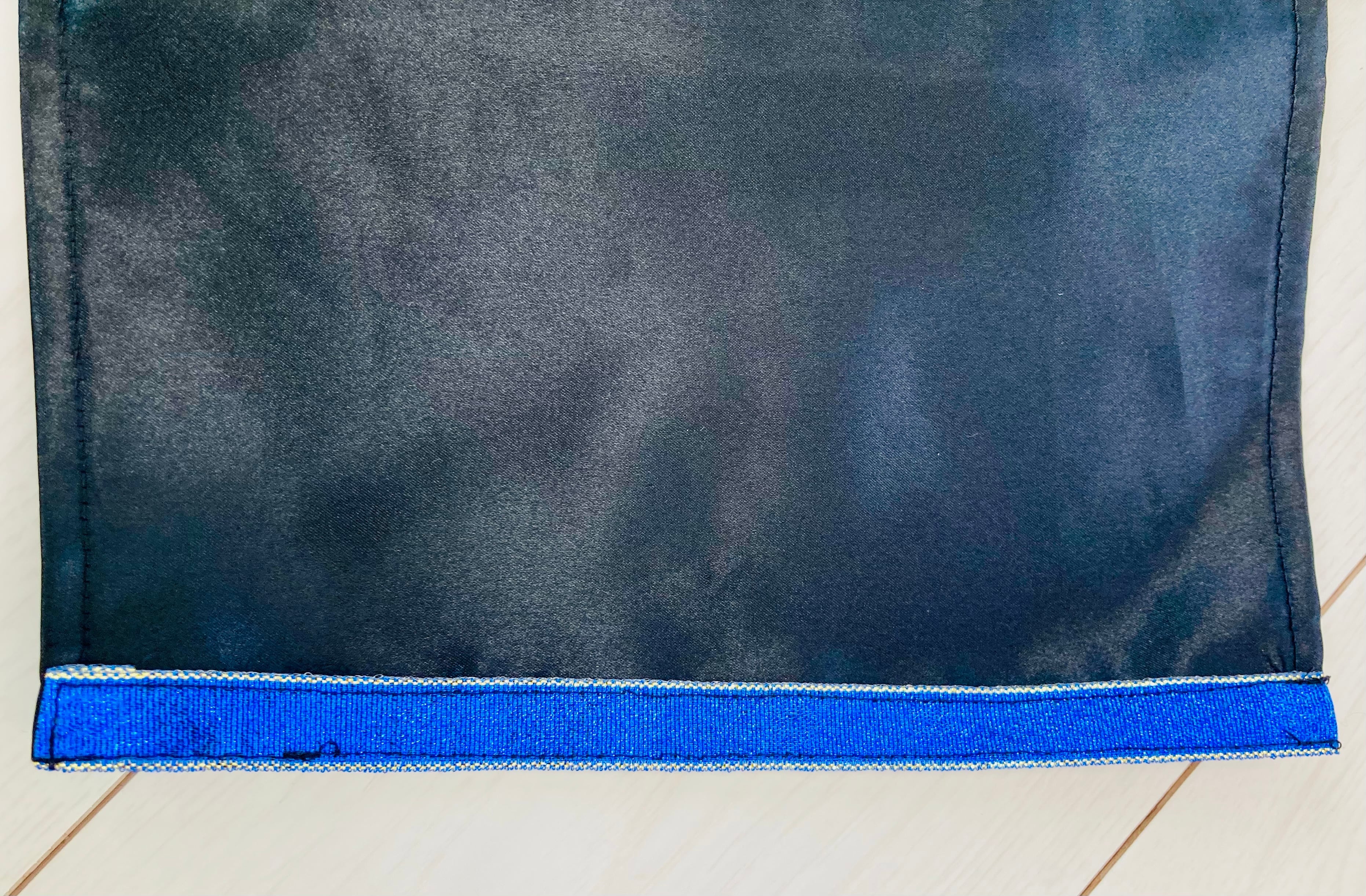 ストレッチスパンコール生地とサテンのヒップスカーフ。ラインストーンモチーフ付き。