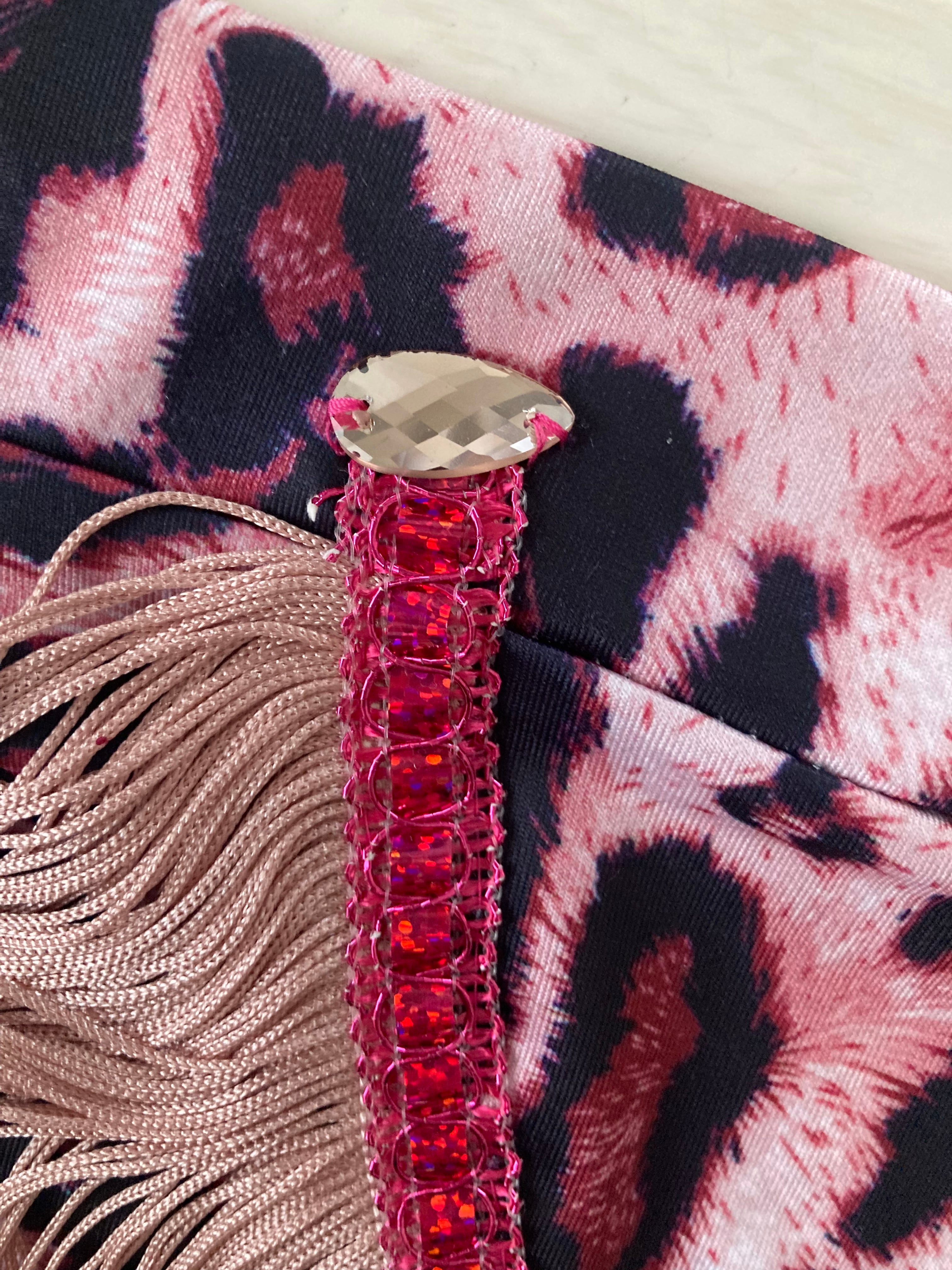 Ghs-26-021 ラインストーンモチーフ付き 豹柄フリンジH.S