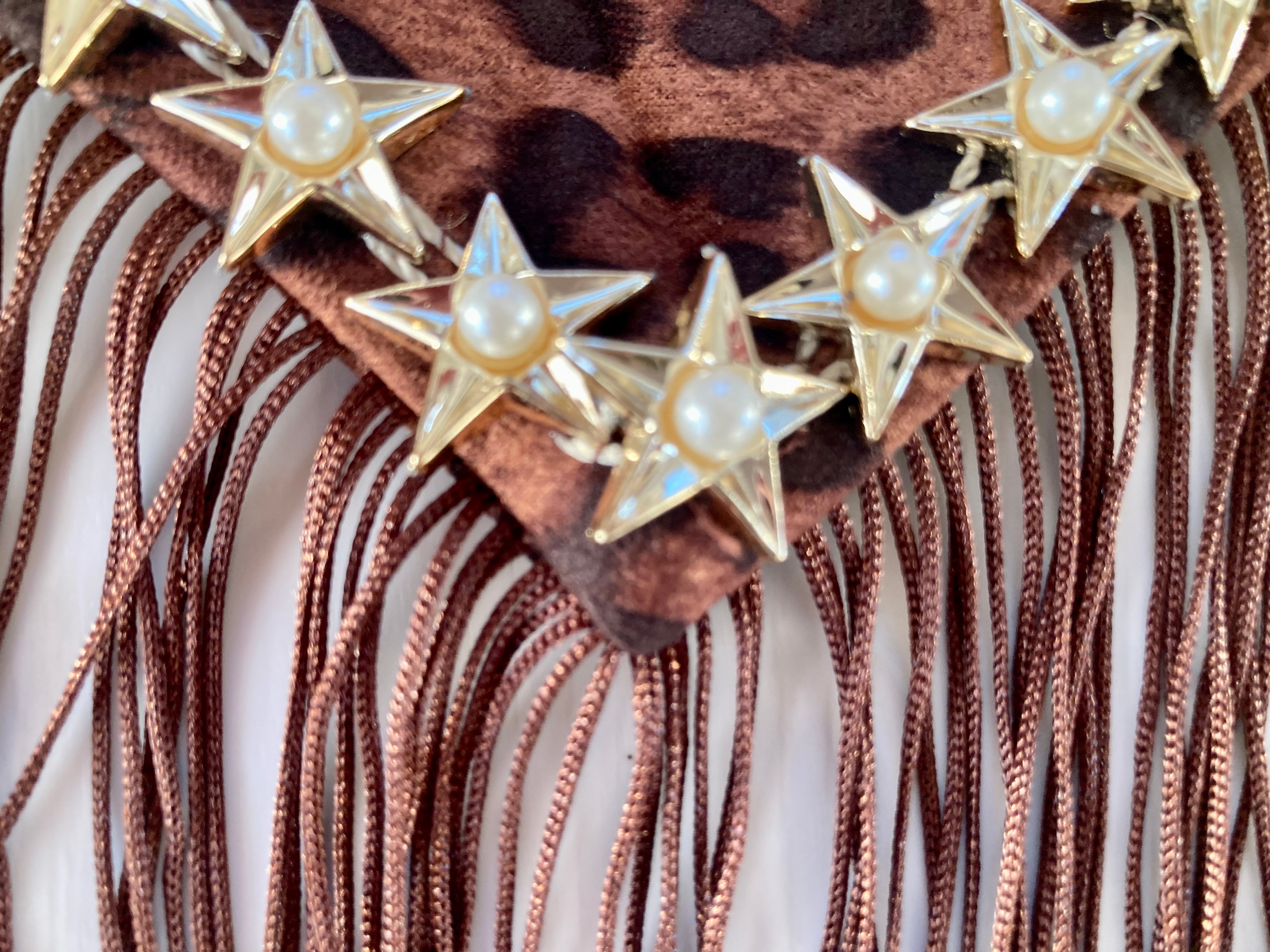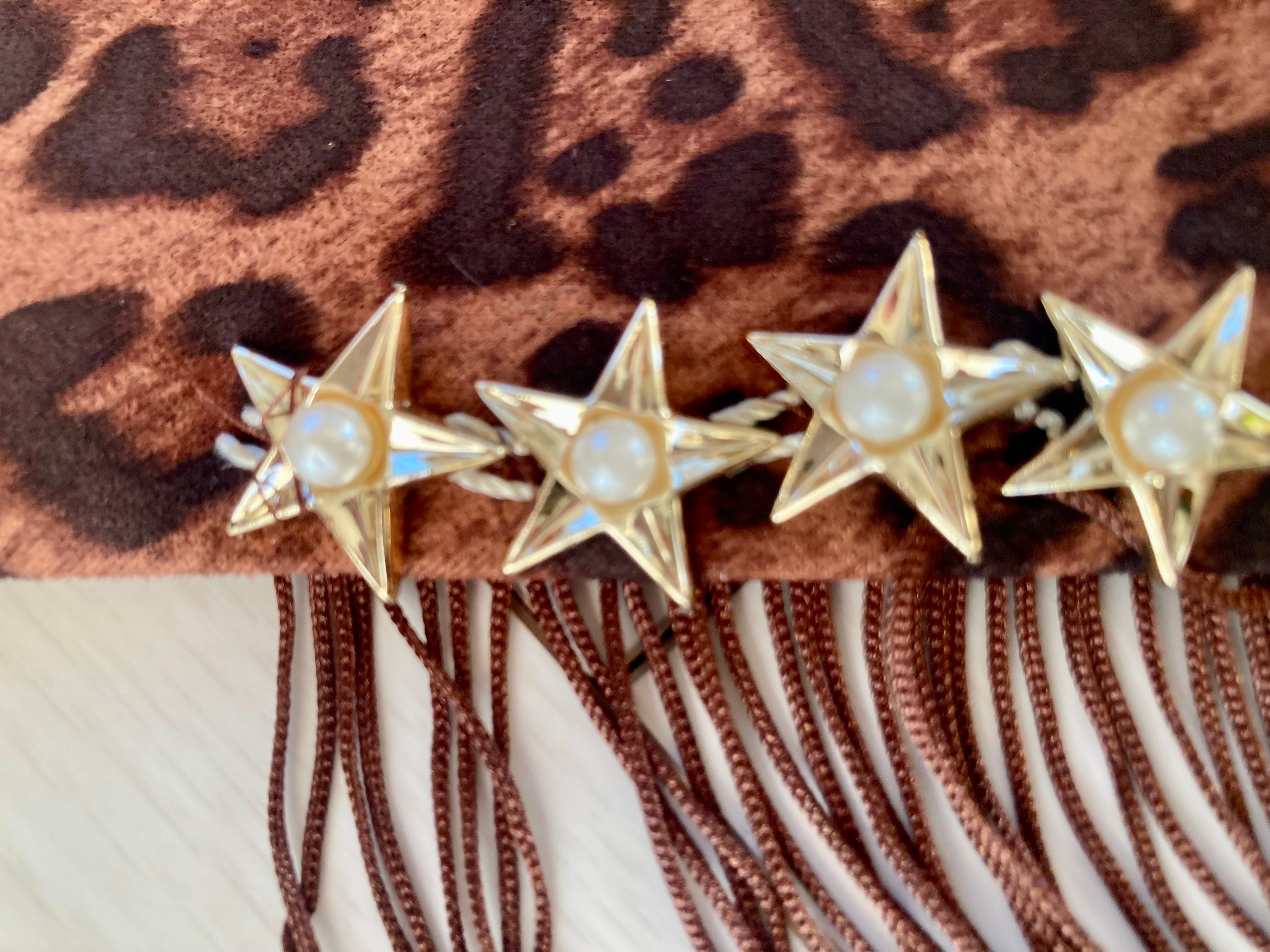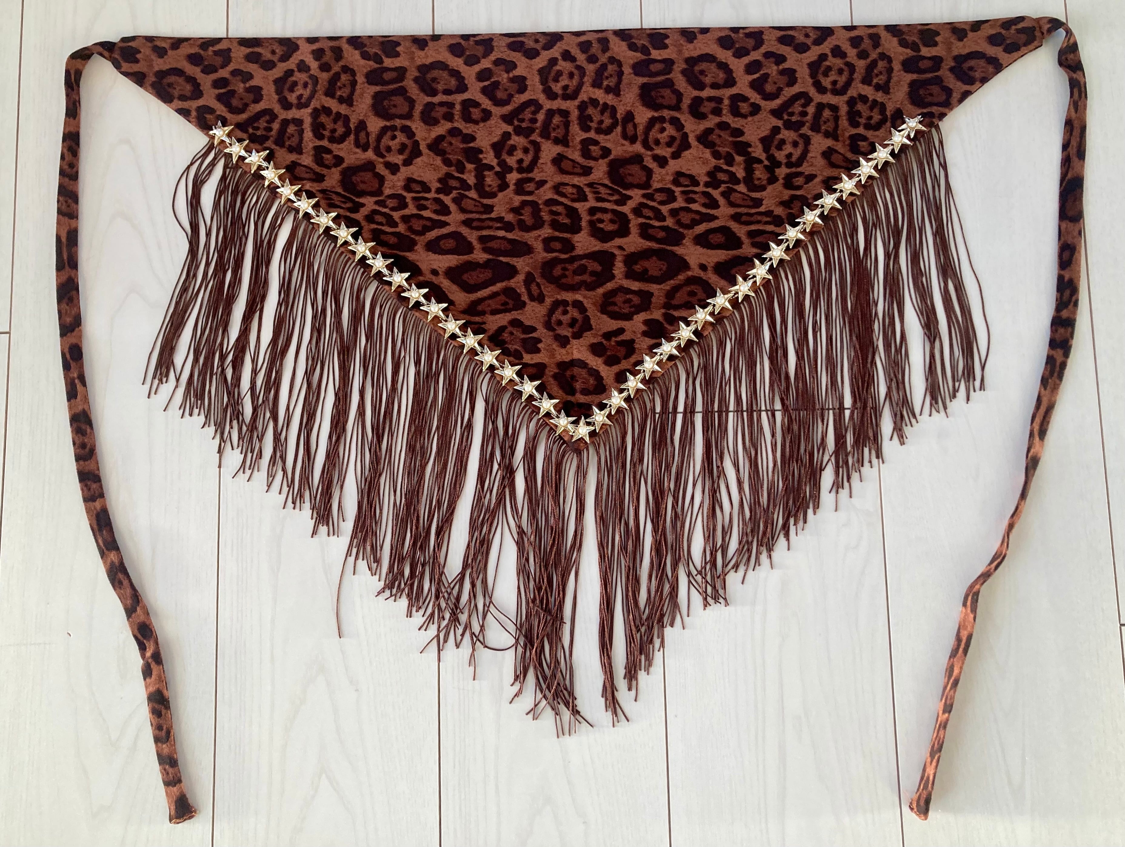 フリンジ付きの豹柄ヒップスカーフに、星モチーフのブレードをあしらった、商品